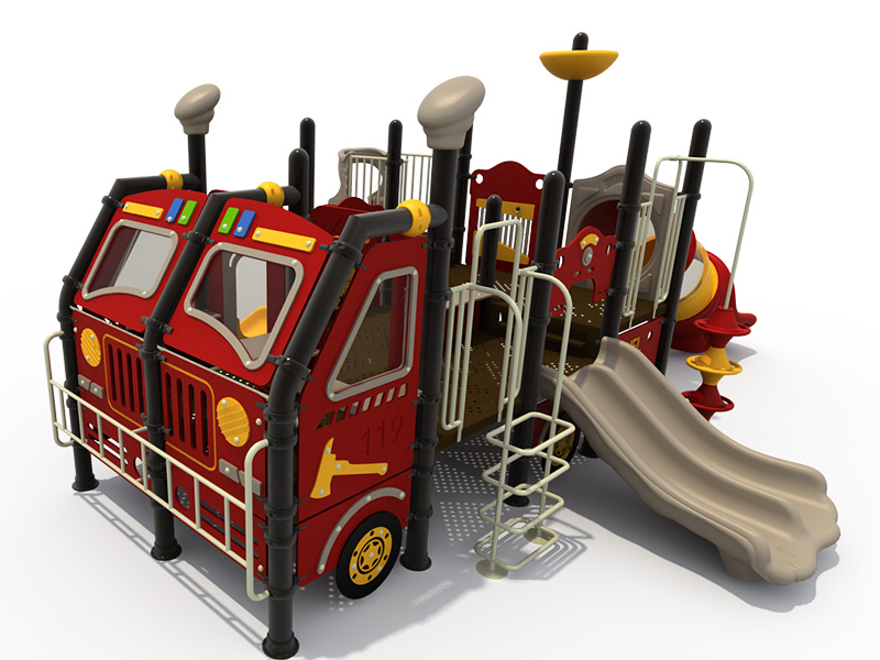 Our main line playgrounds are made of high-density polyethylene (HDPE) plastic material that has excellent benefits like being solidly built, durable and safe.